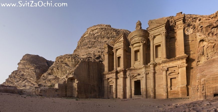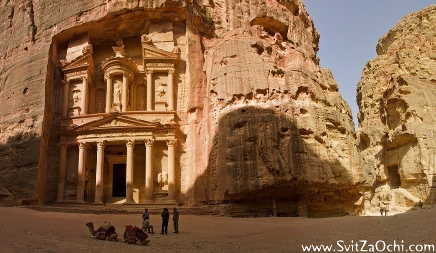 Петра - столиця Едома або Ідумеї, пізніше столиця Набатейського царства. Місто розташоване на території сучасної Йорданії, на висоті більше 900 метрів над рівнем моря, над долиною Арави, у вузькому каньйоні Сик. Прохід в долину - через ущелини, розташовані на півночі і на півдні, тоді як зі сходу і заходу скелі прямовисно обриваються, утворюючи природні стіни до 60 метрів у висоту. Коли проходиш прохолодним каньйоном Сик завдовжки кілометр, за поворотом відкривається Скарбниця - велична будівля з фасадом, висіченим з величезної скелі.