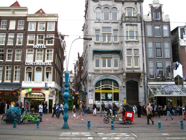Велелюдний проспект Дамрак з натовпами туристів з усіх континентів пролягає від Centraal Station (Головного вокзалу) до центрального майдану Damplein. На проспекті розташована монументальна колишня Біржа (Beurs van Berlage) з сорокаметровою годинниковою вежею, зразок нідерландського модерну. У цій будівлі в 2002 році взяли шлюб принц Оранський Віллем-Александер та Максима Сорреґ'єта Черруті.