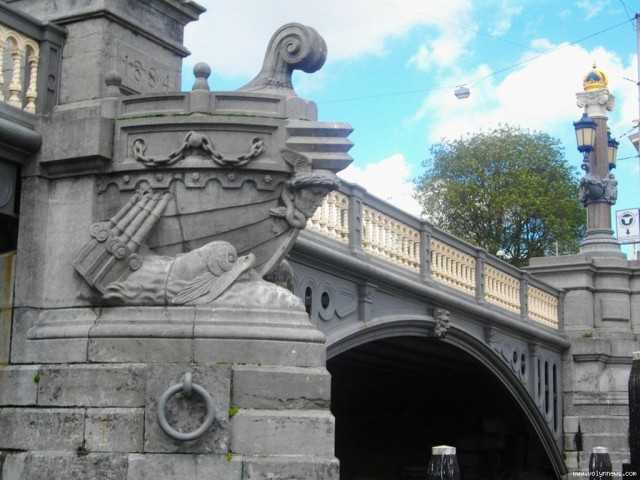 Blauwbrug (Синій міст) через Амстел поєднує квартал Rembrandtplein (Майдану Рембрандта) з майданом Waterlooplein. Насправді сьогодні його колір сірий, а назва лишилася від колишнього дерев’яного мосту, пофарбованого у синю барву нідерландського прапора. Його архітектура нагадує деякі паризькі мости через Сену.
