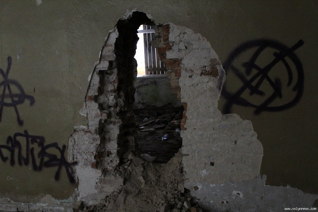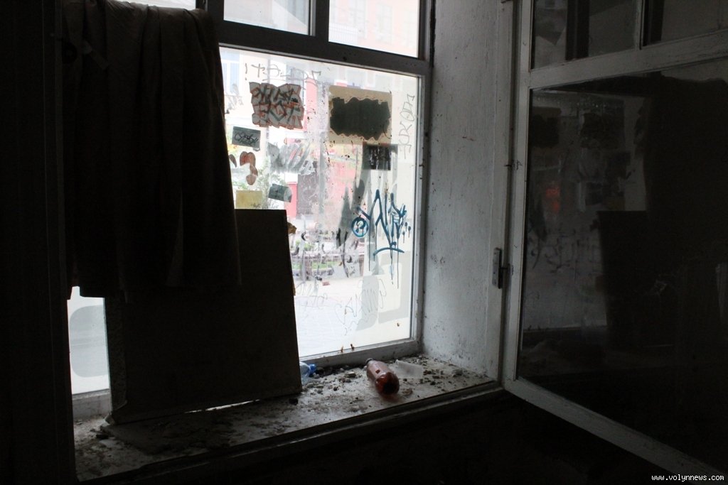 Утім, не були б ми українцями, якби не зазирнули трохи глибше, за «показову» алею. Так, що тут? Закинутий будинок, який «сябри» дбайливо завісили рекламною афішею. А всередині – притулок безхатченків і неприємний запах. «Ні, це не хороше місце і нічого доброго тут на нас не чекає»,- вирішили ми і попрямували далі.