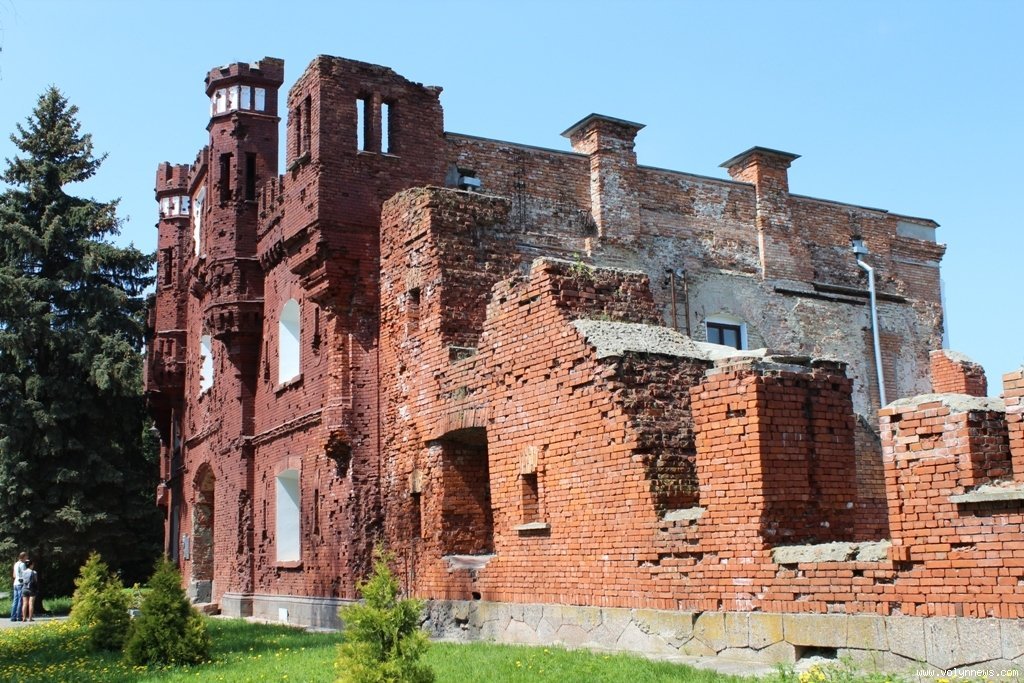 Окремою темою, звісно, є відома Брестська фортеця. Уже наближаючись до неї, ми відчули «звуки війни» - з динаміків, розміщених над воротами фортеці, лунали постріли, вибухи та пісня «Вставай, страна огромная». Всередині крокувала молодь, одягнена в одяг воєнних літ. До слова, можна було й собі отак «причепуритися» за зовсім «скромну» платню - на наші гроші 50 гривень за костюм.