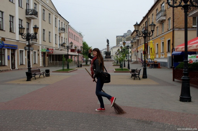 Центр міста – дуже чистий. Уже з 6 ранку двірники «гребуть» мітлами незрозуміло що – і так усе стерильно. До слова, двіринки у Бресті - добрі! Навіть дали «покататися» на мітлі.