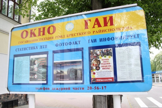Між іншим, червоний колір на вулицях Бресту – у тренді. Також великим «респектом» користується доблесна міліція – її вихваляють на кожному стенді.