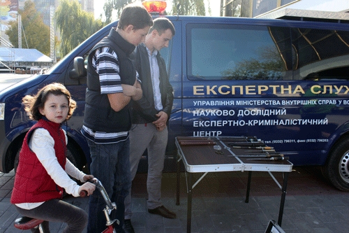 Своєрідний «день відкритих дверей» організували працівники органів внутрішніх справ на Театральному майдані. Глядачі спостерігали за показовими виступами спецпідрозділу «Беркут», Державної служби охорони та ознайомилися з новинками Науково-дослідного експертно-криміналістичного центру.