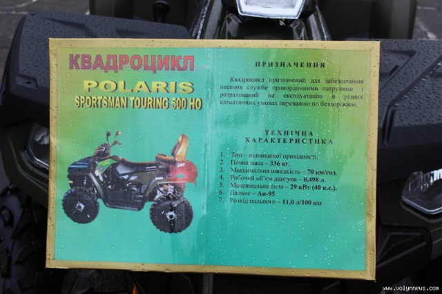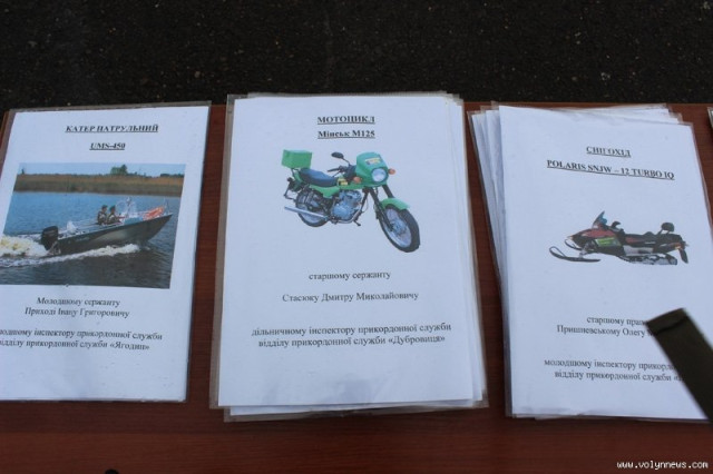 Завдяки допомозі США та Європи волинські прикордонники оновили технічний парк. Відтепер вони патрулюватимуть державні межі на нових снігоходах, квадрациклах, мотоциклах і катері. Також військовослужбовці отримали джип «Land Rover» і 6 автівок «Chevrolet Niva».