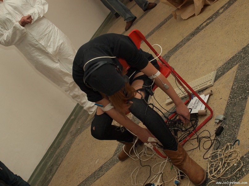 Так, актори зобразили дівчину, залежну від мережі, політичного вампіра, людей, котрі творять за горілку, та хлопця на унітазі, який розказував про свої проблеми, навіяні телебаченням. Театрали були загримовані під зомбі – це дало глядачам зрозуміти, до чого призводять показані «Гармидером» проблеми.