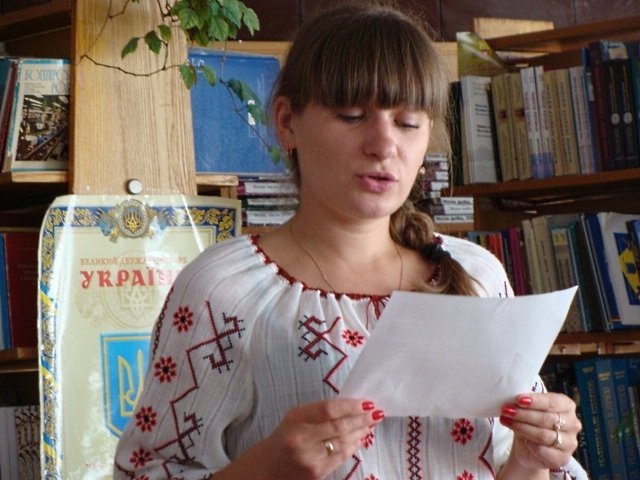 Ведучі дійства, бібліотекарі відділу краєзнавчої роботи Оксана Рибачук та Юлія Ціхоцька розповіли, що письменниця активно боролася за право навчати українською мовою в школах. Так, 1907 року вона разом з Лесею Українкою, Павлом Житецьким і Миколою Лисенком підписала заяву міністрові народної освіти Російської імперії з вимогою дозволити навчання рідною мовою.