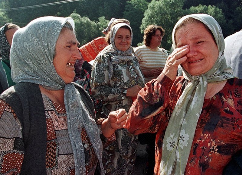 28. Дві боснійські біженки з Сребреніци плачуть від радості, зустрівшись вперше за чотири роки. (Oleg Popov/Reuters)