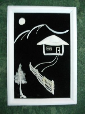 «Техніку я опанував самотужки. Секретами ділитися ніхто не спішить: як обробити кістку, яким клеєм приклеювати. Кожен доходить до цього по-своєму. На одну невелику картину може піти чотири, а то й пʼять рибин по 4-5 кілограмів. Найкраще підходять короп, товстолоб і сом. У мене є картина «Дзвіночки», де я використав цілий 30-сантиметровий кістяк сома. Можу зробити одну картину за вечір, а можу сидіти над нею кілька днів. Це від музи залежить. Роблю їх вночі, починаю з десятої години. Це дуже кропітка робота. Вимагає точності та терпіння. Поклав одну кістку не туди, як забереш, то вже пляма на оксамиті. Все, картина зіпсована», ‒ зазначає майстер.