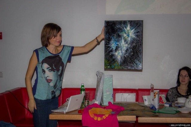 Своєрідним «інтро» зустрічі стала розповідь Ірени про особливості подорожування. У неї двоє донечок – Корена-Джіа та Кая, з якими їй довелось «накатати» чимало кілометрів, подорожуючи світом. Цій темі і присвячена вся її майбутня книга, над якою Карпа зараз працює. Вона, ділиться письменниця, буде мати форму абетки, там на кожну букву буде своя стаття.