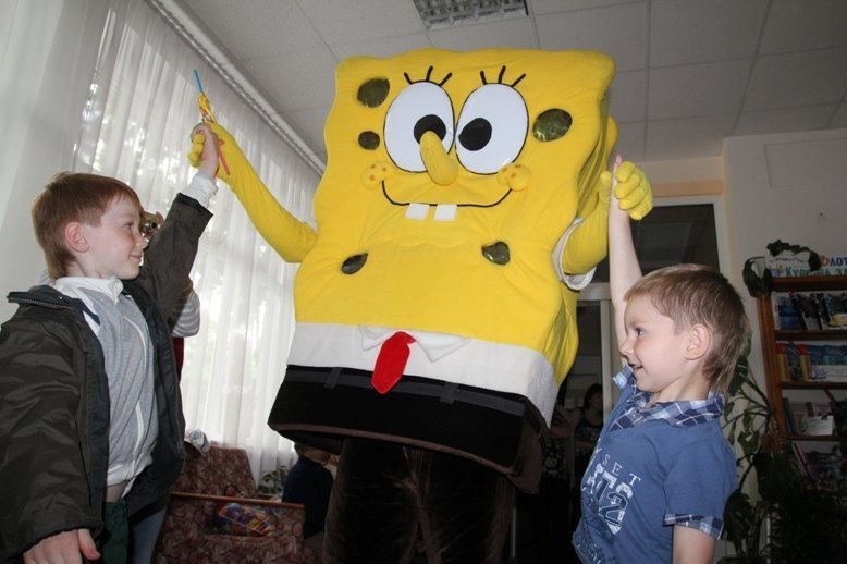 Відтепер у Волинській обласній бібліотеці для дітей можна не тільки почитати, а й зустрітися із справжнісіньким мультперсонажем – Губкою Бобом.