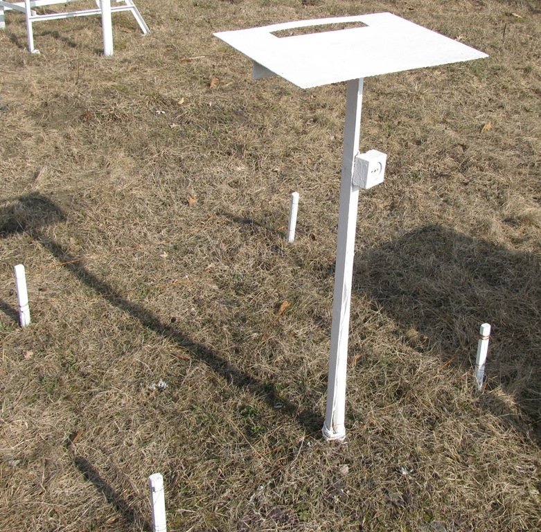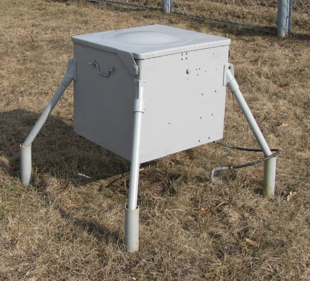 Двічі на добу вимірюється радіаційний фон. Прилад з приміщення виносять фахівці й розміщують на підставці. До речі, клаптик землі навколо підставки огороджений, аби не порушувати природній покрив ділянки. Саме так отримується інформація про радіаційний фон у певній місцевості.