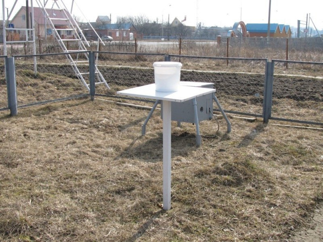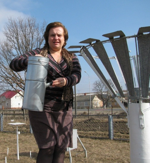Аби виміряти кількість опадів, для збору дощу, снігу використовують спеціальну ємність (на фото). Заміри роблять кожні шість годин, навіть якщо опадів немає. Адже випадає роса або утворюється конденсат.