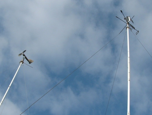 Вітер досліджують за допомогою флюгерів. Один вітряк показує лише напрям, ним користуються тоді, коли немає електрики. Інший флюгер-датчик передає дані на прилад, який розміщений уже в будівлі. І там уже визначається швидкість, напрям вітру.