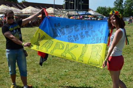 - Так.. Приїхали на фест!, - гарною українською заговорили східняки - в українському одязі та дівчинка в віночку. Ба, в руках у них були і прапори.