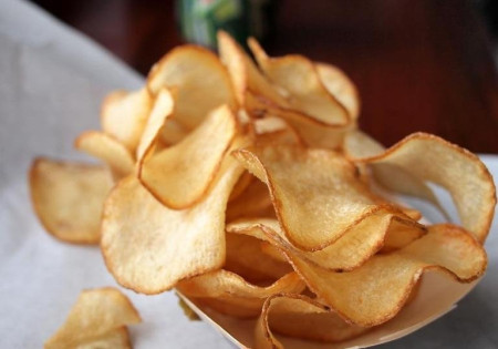 Створили чіпси випадково. Один із відвідувачів ресторану відмовився їсти подану йому смажену картоплю, оскільки, за його словами, шматочки були занадто товсто нарізані. Розлючений кухар тоненько подрібнив картоплю, посипав її сіллю та обсмажив в олії.