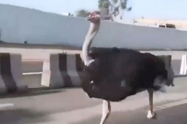Неймовірні перегони страуса з автівками на відео зняв водій, який став свідком цієї ситуації. За його словами, він був дуже здивований, коли побачив страуса на жвавій дорозі.