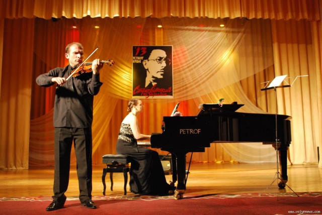 Композиції Ернеста Шоссона, Каміля Сен-Санса та Ігоря Стравінського пролунали у виконанні скрипаля Назара Федюка та Юлії Маківничук. Зауважимо, молоді музиканти - лауреати багатьох національних та міжнародних конкурсів.