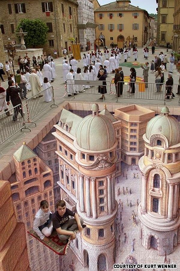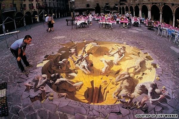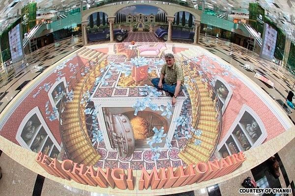 Туристів та інших відвідувачів сінгапурського міжнародного аеропорту Чангі аж до листопада дивуватиме витвір 3D-художника Курта Веннера, написаний на мармуровій підлозі. Оптична ілюзія, що знаходиться в з Терміналі 3, зветься Be A Changi Millionaire.