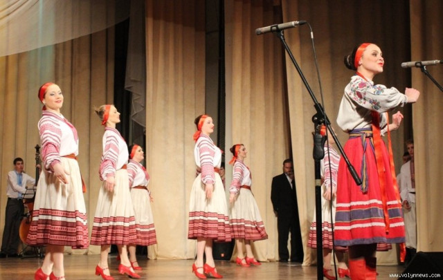 Розпочали звітний концерт вокально-хореографічною композицією «Парубоцькі залицяння» за мотивами волинського фольклору та поезії Тараса Шевченка. Виконували її лауреати Всеукраїнського телефестивалю «Львівська брама-2012» учасники Народного ансамблю пісні і танцю «Розмай».