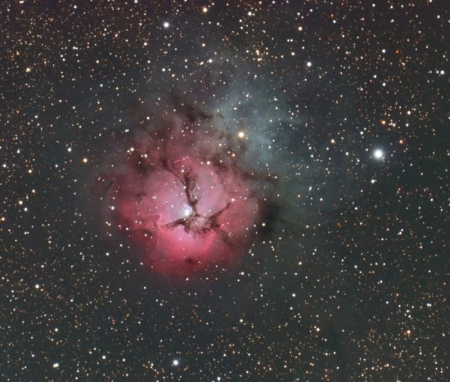 Трироздільна туманність, що цілком дозволяє досліджувати космічні контрасти. Знаходиться у сузір'ї Стрільця.