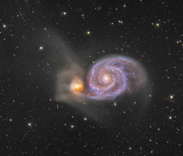 Спіральна туманність NGC 5194, що знаходиться знаходиться на відстані близько 31 мільйона світлових років і належить маленькому сузір'ю Гончих Псів.