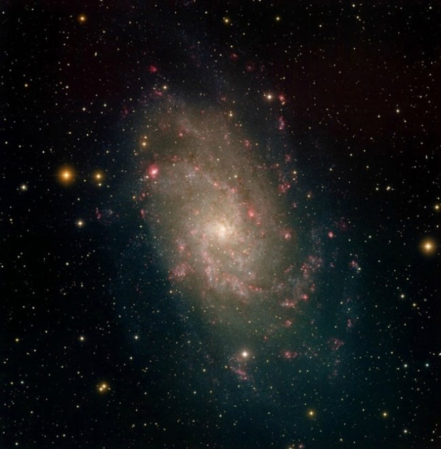 Спіральна галактика M33, що названа за іменем сузір'я, у якому знаходиться. Вона майже у чотири рази менша, ніж наша Галактика, Чумацький Шлях та галактика Андромеди. Цю галактику навіть можна побачити у якісний бінокль.