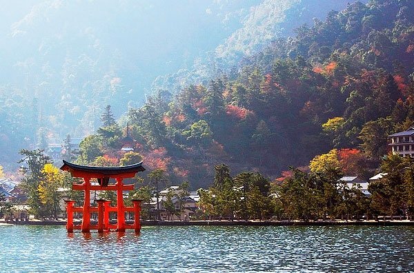 Назва його перекладається як «острів-храм», тут збудовано одні з найкрасивіших торій (ритуальних воріт) у Японії. Близькість моря надає місту ще більшого шарму, а його дощатими тротуарами цокотять олені, яких тут дуже люблять.