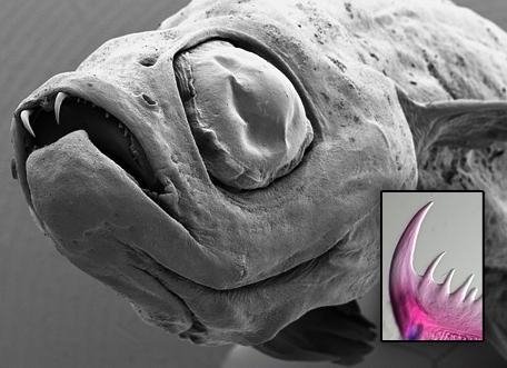 Дуже маленька рибка з гострими іклами та страшним обличчям була знайдена в Бірмі. Повідомляється, що її ікла - релікт прадавніх часів, коли цей вид був більшим і значно більш хижим. Зараз вони майже атрофувалися.