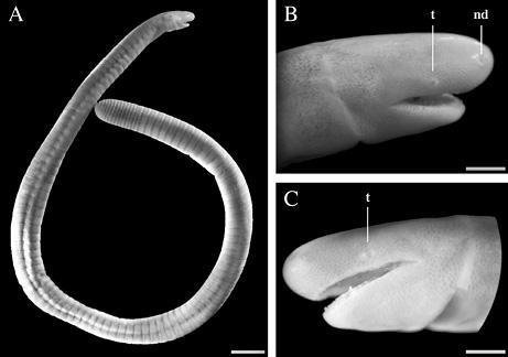 Нові різновиди виду «caecilian» виживають на суші без ніздрів, легенів та ніг, як стверджують дослідники, які відкрили цю дивну хробакоподібну амфібію в листопаді. Вони можуть досягати до 70 сантиметрів в довжину.