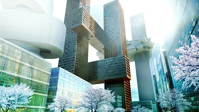 Це диво планують звести у столиці Південної Кореї Сеулі. Архітектори датської компанії Bjarke Ingels Group створили проект хмарочосів Cross Towers, які будуть з’єднані між собою мостами на висоті 70 та 140 метрів таким чином, що справді нагадуватимуть значок «#». А на дахах будівель облаштують садочки.