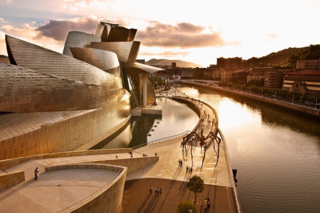Музей Гуггенхайма в Більбао, що в Іспанії, порівнювали і з кораблем, і з метеоритом, і з зорельотом, який прибув із Альфа Центавра, і в велетенським суфле, і навіть із шматком металевої цвітної капусти.