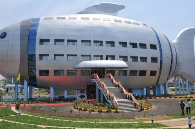 Споруда, в якій розмістилася Національна рада з розвитку рибальства Індії, зведена, відповідно, у формі гігантської сріблястої рибини. У темну пору доби її підсвітлюють таким чином, що здається, ніби вона пливе містом.
