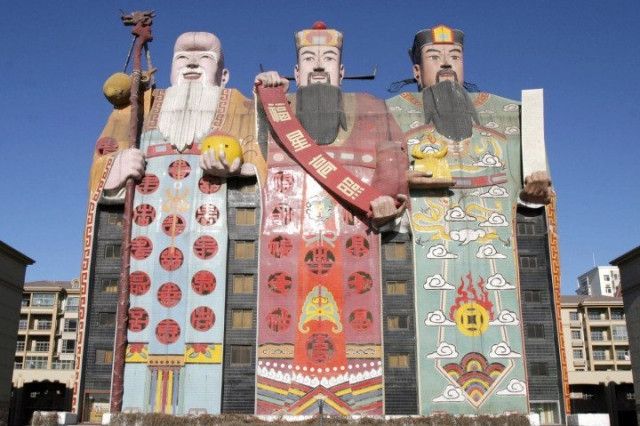 Гості готелю Тіанзі, що в китайській провінції Хебей, можуть почувати себе під захистом ласкавих богів – Фу, Лу та Шоу, які за міфами, можуть подарувати людині щастя, процвітання та довголіття. Те, що може здатися персиком у руці білобородого бога – насправді номер люкс.