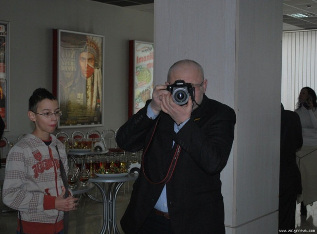 Депутат Луцької міськради, «фронтовик» Олександр Пиза прийшов на кіно із сином, а позафракційний Андрій Калахан не оминув нагоди сфотографуватися на фоні афіші кінострічки.