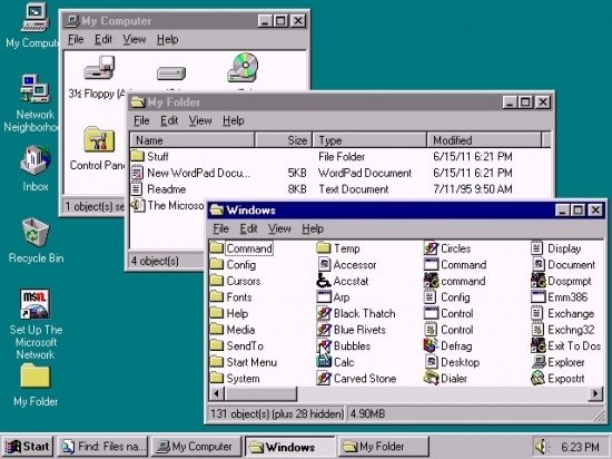 Мабуть, найважливішим роком в історії Microsoft став 1995 рік, коли Windows перетворилася на повноцінну операційну систему. У Windows 95 з’явилися багато елементів інтерфейсу, що стали уже звичними: наприклад, кнопка «Пуск» і панель завдань. Всі версії Windows, що виходили з тих пір, аж до Windows 8, – духовні спадкоємці Windows 95.