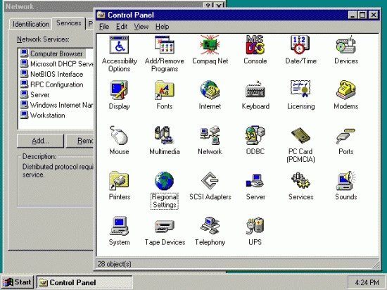 Поки Windows 95 завойовувала комп’ютери звичайних користувачів, NT продовжувала існувати в рідному для себе корпоративному середовищі. Четверта версія успадкувала багато рис інтерфейсу Windows 95, але як і раніше мала досконаліше ядро і більше мережевих можливостей. Тим не менш, як і у версії 3.1, в четвертій NT все ще не вистачало драйверів пристроїв, а вимоги до обладнання залишалися високими.