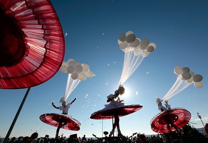 Ніцца, Франція: парад виконавців під час 129-ого Карнавалу в Ніцці