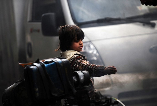 Алеппо, Сирія: хлопчик гріє руку над генератором поблизу Салахеддіну