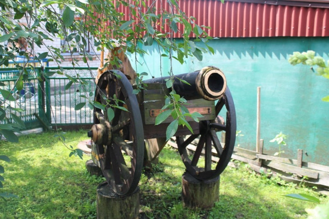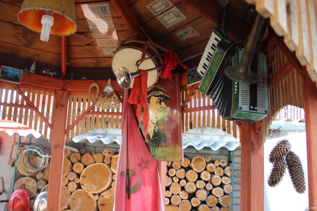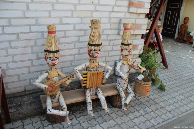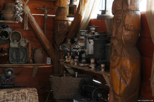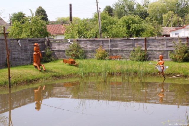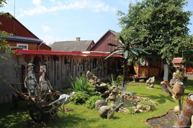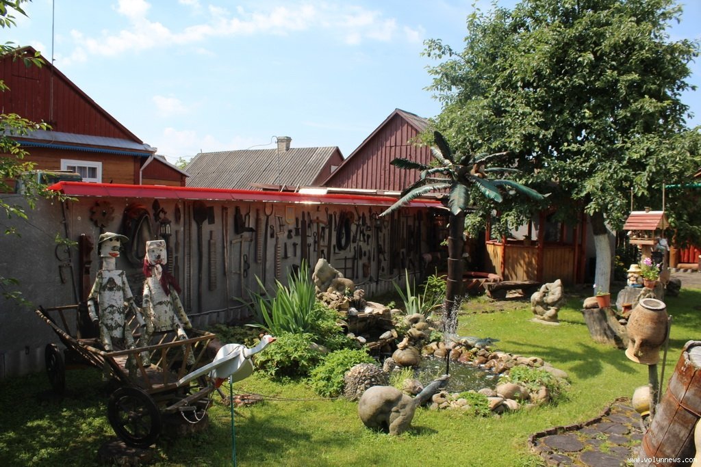 Наступним пунктом на шляху маршруту стала садиба різьбяра по дереву Анатолія Деменіка. Майстер займається створенням оригінальних скульптур із дерева та інших матеріалів, зокрема, старих автомобільних покришок, а також володіє цікавою колекцією предметів, пов’язаних із минулим України.