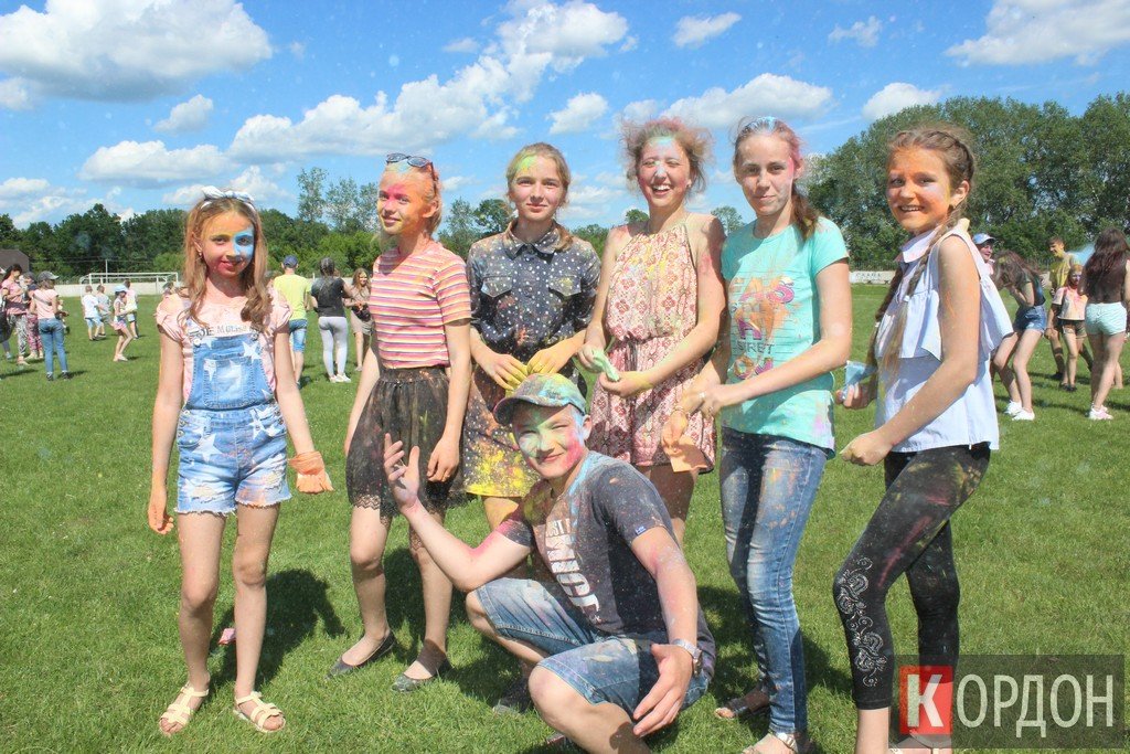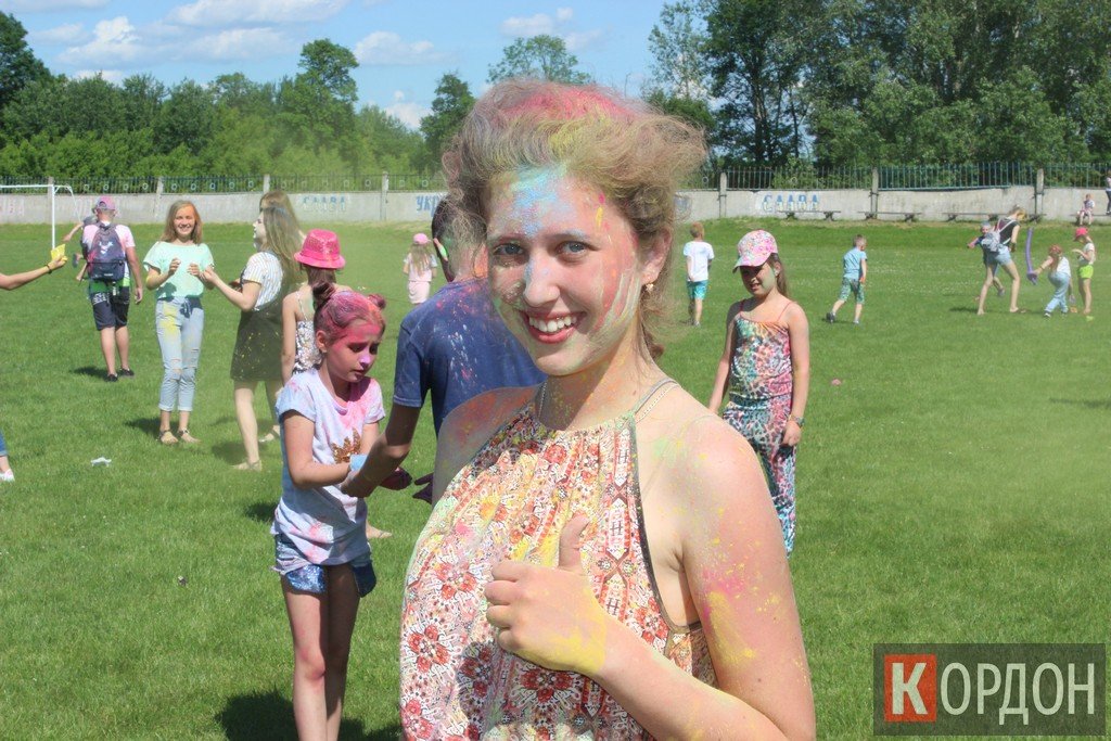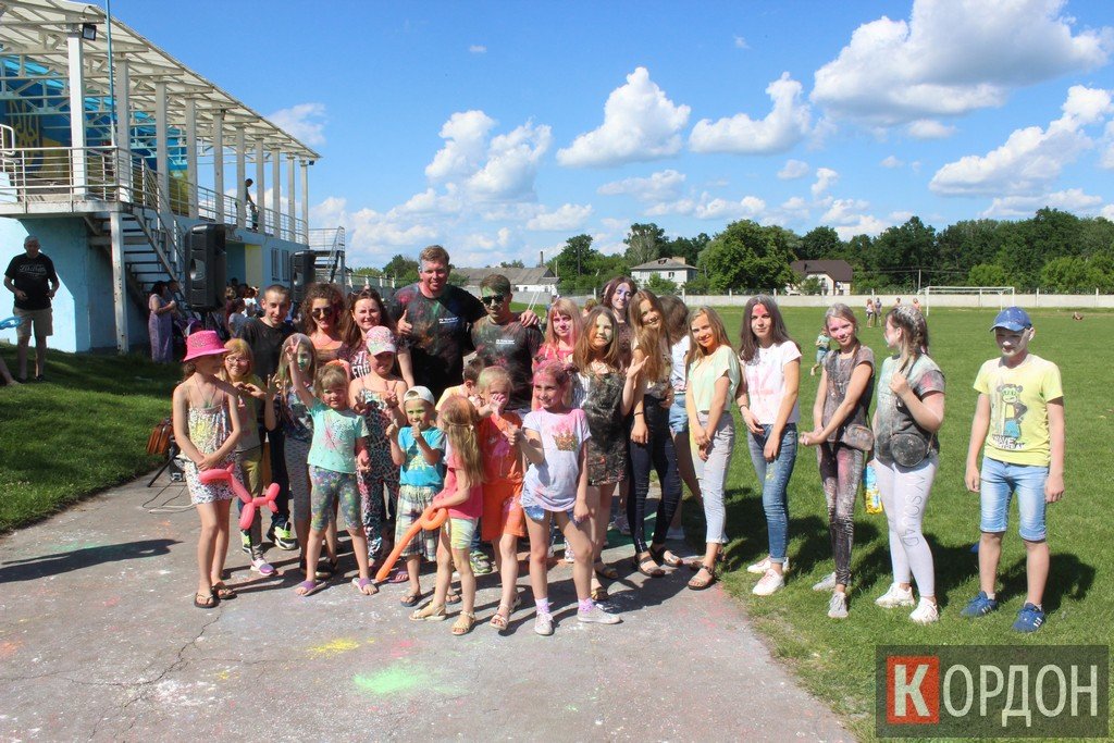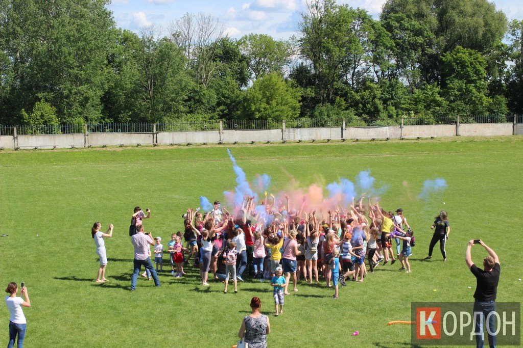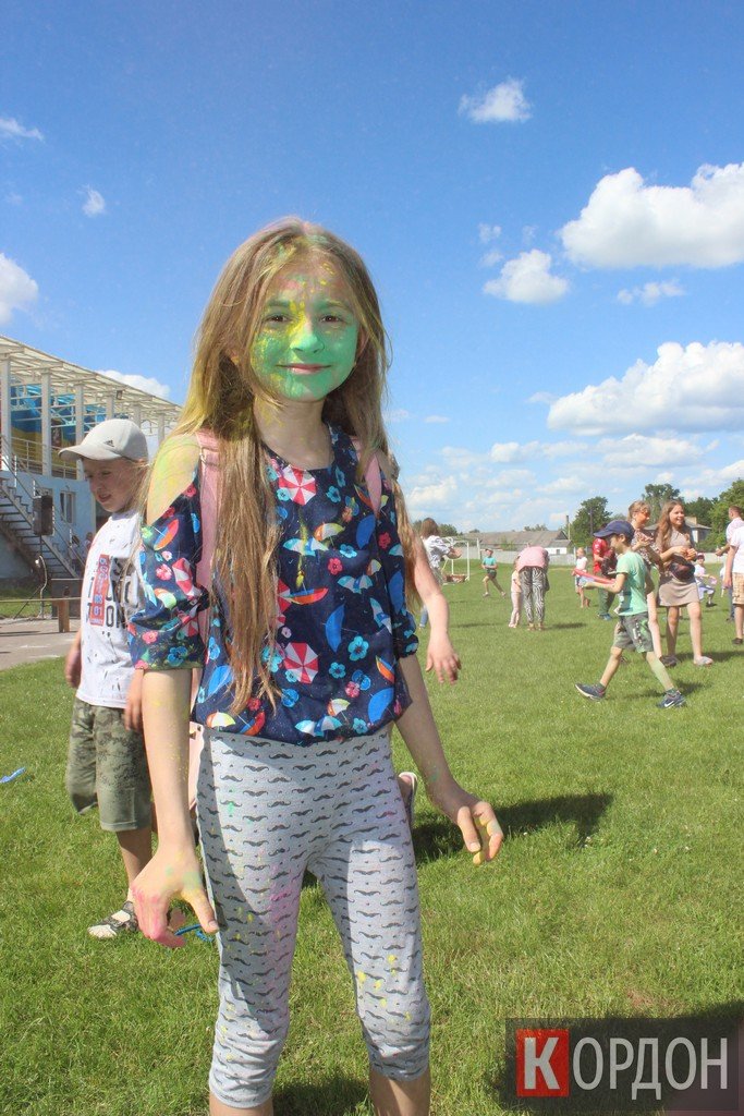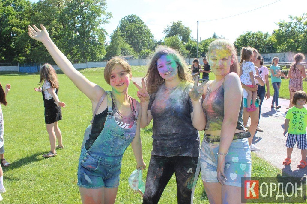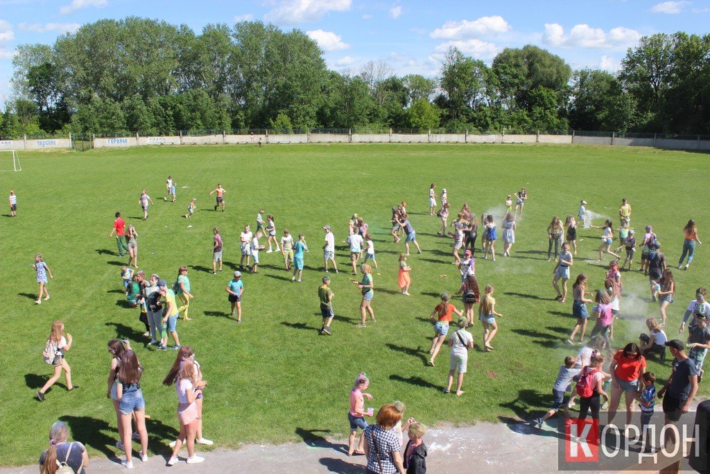 А після веселих танців дійшла черга і до фарб холі. На стадіоні запанував маленький гармидер: дітлахи з веселим сміхом досхочу кидали одне в одного різнокольоровими фарбами. Зауважимо: у матусь не буде приводу для переживань, оскільки ці фарби можна легко відіпрати.