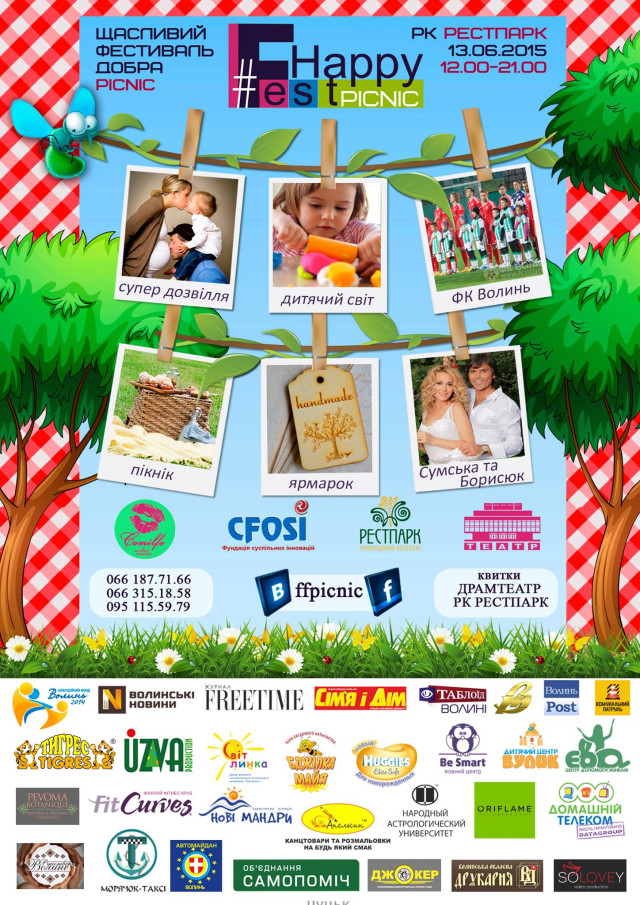 Нагадаємо, 13 червня 2015 року в рекреаційному комплексі «Рестпарк» відбудеться масштабний фестиваль добра та радості Happy Fest PICNIC. Початок – о 12.00 год.