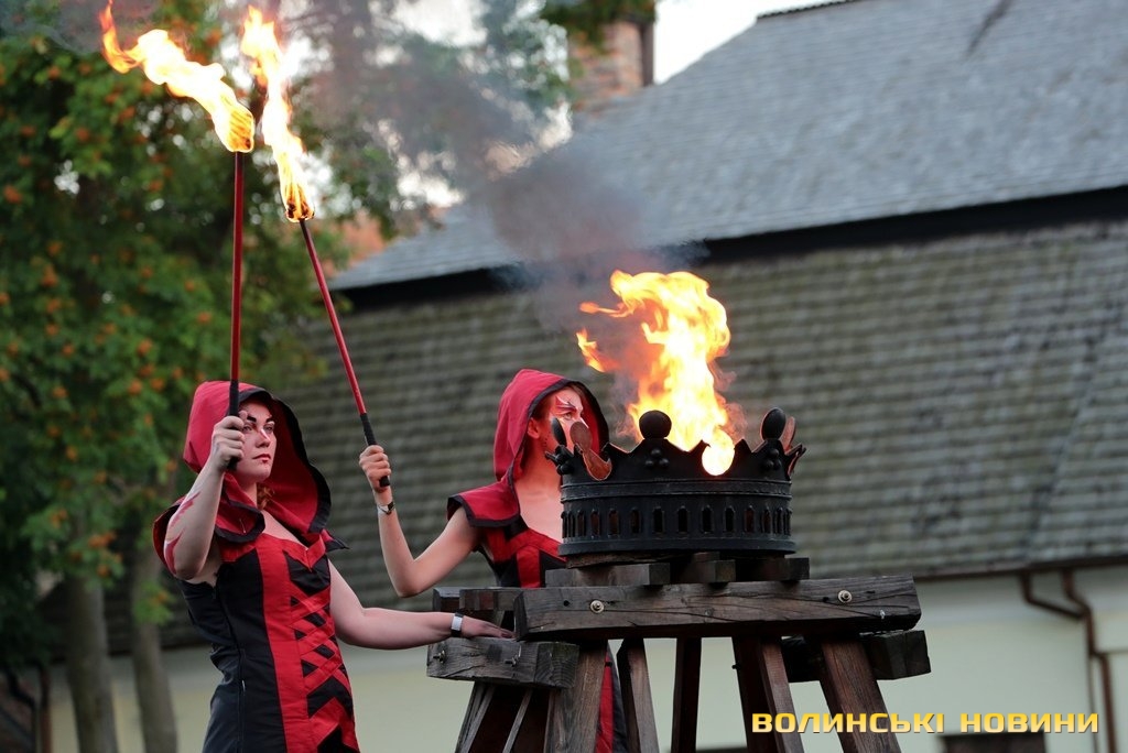 А казка продовжилася: у дворі запалала вогняна корона. Згодом розпочалося театралізоване дійство «Послання Міжчасся» за участю театру на ходулях «LiumanowShow» (Київ), «GarageDrumShow» (Луцьк), театру «ГаРмИдЕр» (Луцьк), творчої групи «Княжа забава» (Львів), клубу середньовічної реконструкції «Айна Бера» (Луцьк).