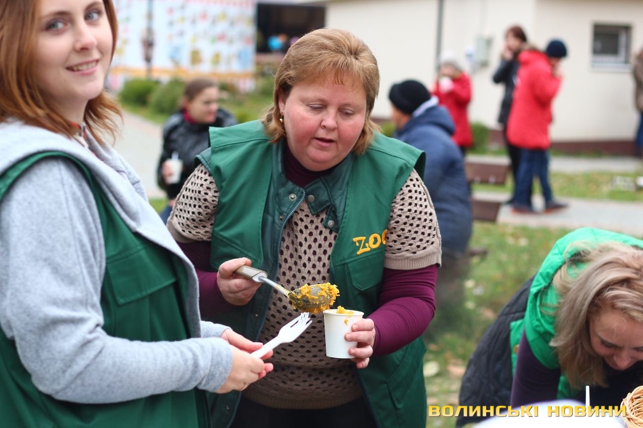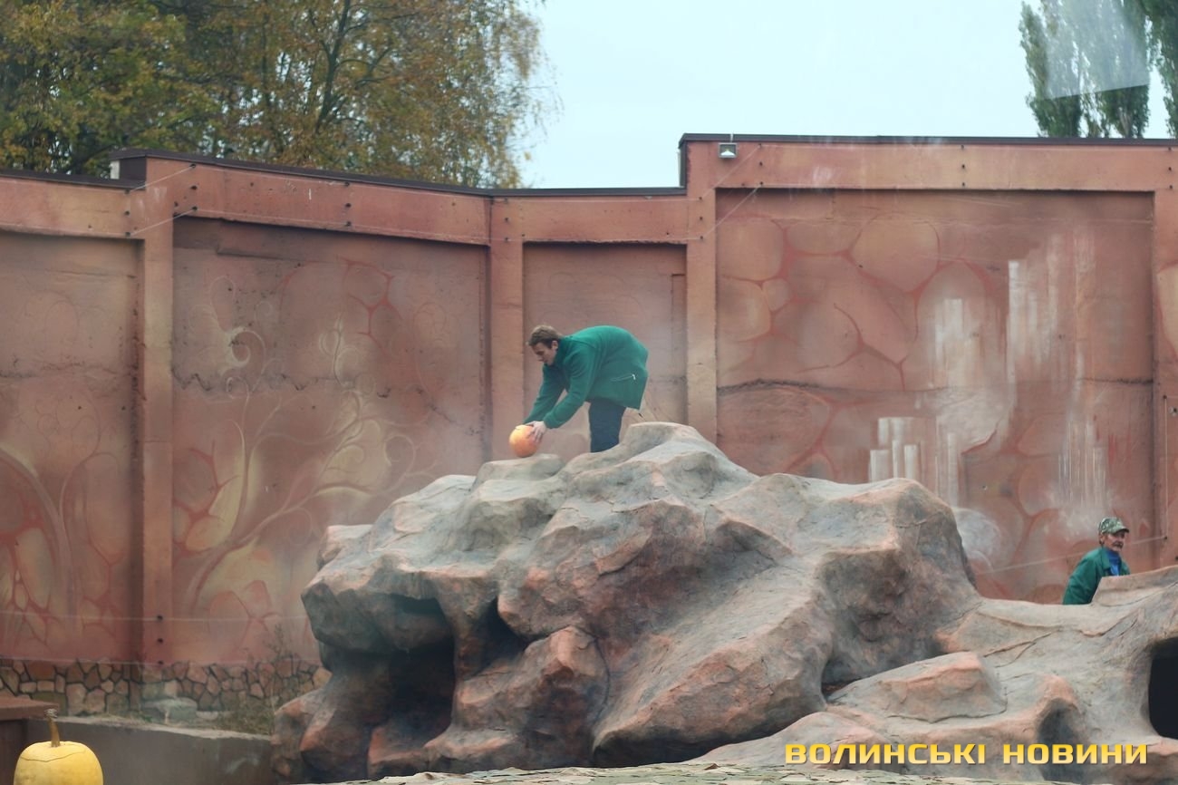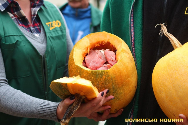 «Гарбузове свято» організували у луцькому звіринці до річниці його оновлення. Присутніх пригощали гарячим чаєм, гарбузовою кашею, організували рухливі ігри для малечі. А також показово погодували пеліканів і тигрів. Останніх, до слова, вгощали оригінальною стравою – гарбузами, «фаршированими» м’ясом.