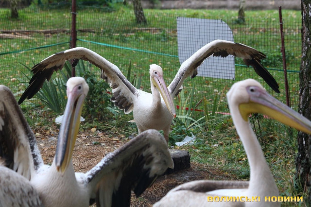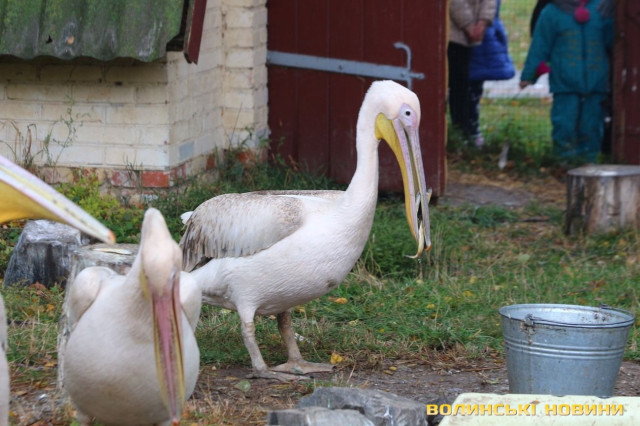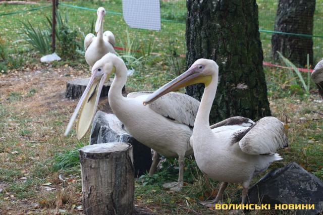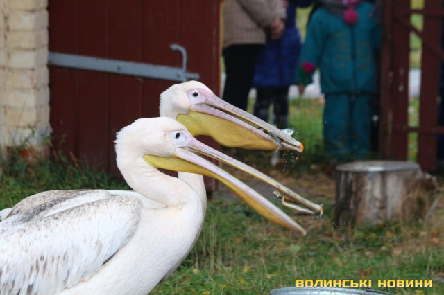 Пригощали і звірів. Першими кормили пеліканів, які харчуються, до слова, виключно рибою. Ці птахи хоч і не дуже охоче ловили рибку «з льоту», проте залюбки доїдають її коли зголодніють. Зі слів директорки, ці вальяжні птахи заввиграшки з’їдають цілі рибини, вагою близько 700 грамів.