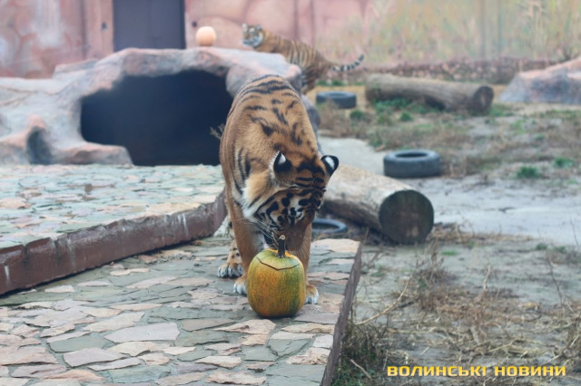 У Луцькому зоопарку людей і тигрів частували гарбузами