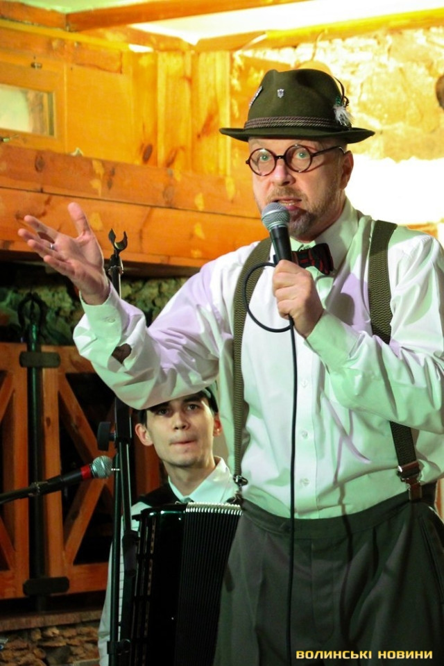 До Луцька вкотре завітав епатажний український телеведучий, письменник, актор та співак Антін Мухарський, відомий під сценічним псевдонімом Орест Лютий. Як і завжди, музикант потішив публіку патріотичними піснями, не поскупившись на «гострі» слівця.