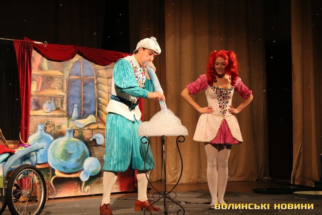 Казкове дійство «Велике буль-буль шоу або викрутаси Магістра Бульбуліна» показали маленьким лучанам та їх батькам. Поспостерігати за пригодами у чарівній країні Пузирляндії запросили й малят, чиї батьки захищають терени України у зоні АТО.