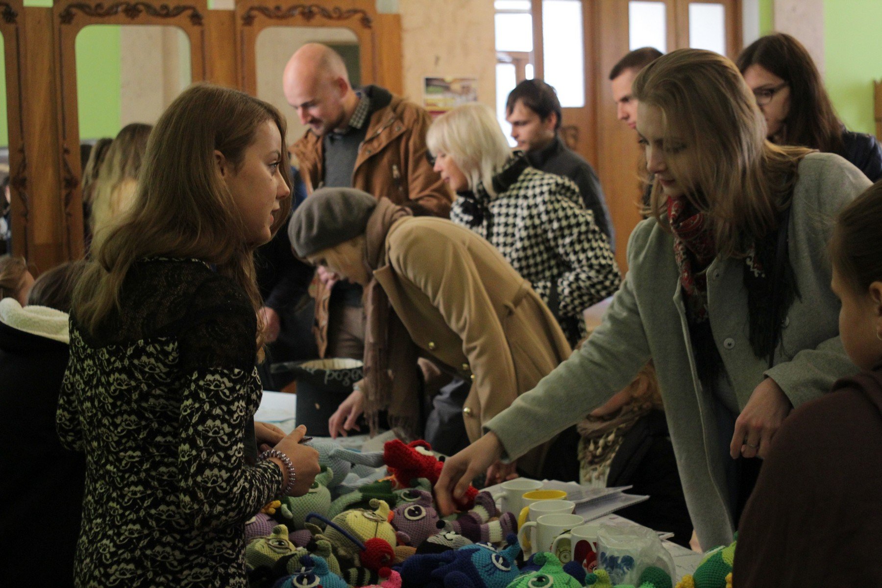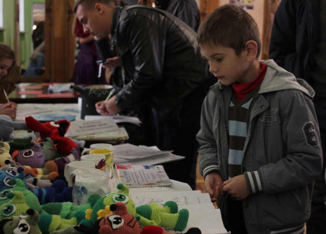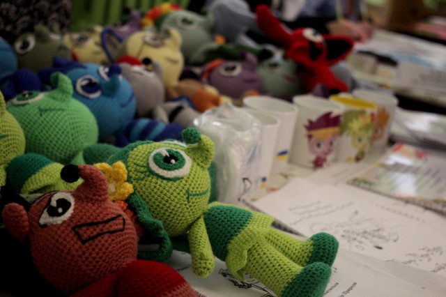 Володимир Ликов привіз з собою в’язані іграшки-тельфи, які разом з книгами про цих персонажів продавали у фойє театру.