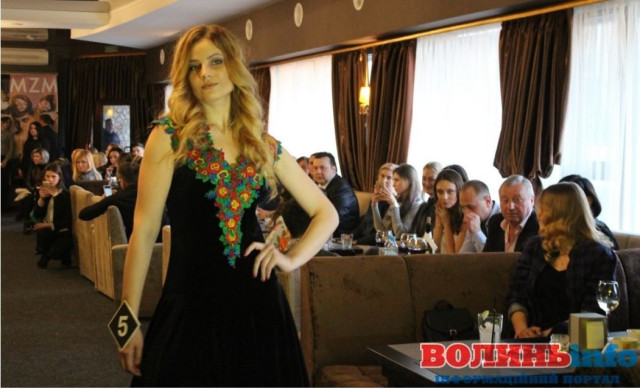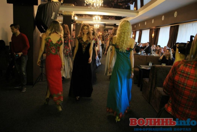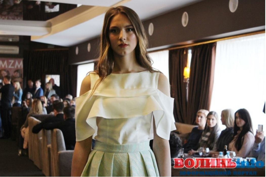 Під час третього, фінального, конкурсу, дівчата дефілювали у вечірніх сукнях від волинської модельєра-дизайнера Анни Дідух.
